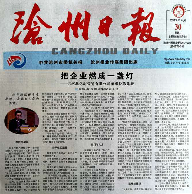 近日,滄州日報對我公司進(jìn)行了紀(jì)實采訪,道出了億海所追求的價值觀。